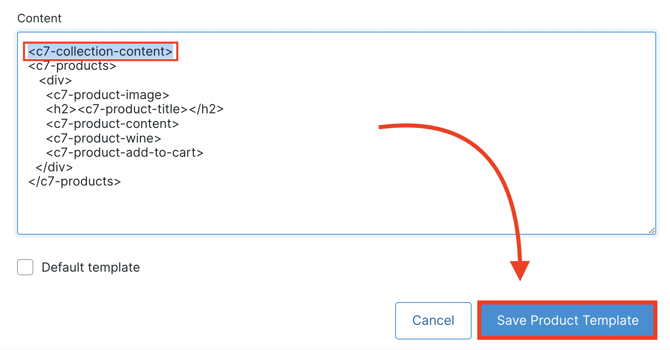 - Within the Content area, add the tag <c7-collection-content> along with any other applicable collection tag or data. Save.