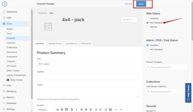 IMPORTANT: In each of the Products, temporarily setting the Web status to Not Available first, and then changing it back to Available on the Web. (If you follow this process, this clears any allocation Carts, and the items will not be added back to the Carts once it's made 'Available').